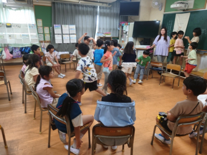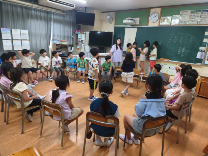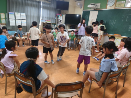 学活の時間に、8月生まれの友達をお祝いし、みんなで室内ゲームをして楽しむ「おたんじょう日会」をしました。
