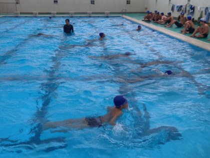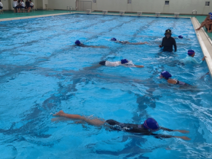 今日は、バタ足やクロールなどの練習をした後、平泳ぎの練習を中心に取り組みました。