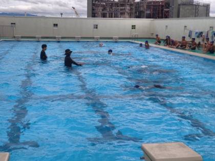 今日は、バタ足やクロールなどの練習をした後、平泳ぎの練習を中心に取り組みました。