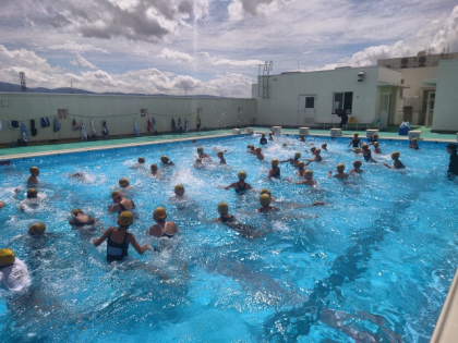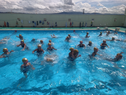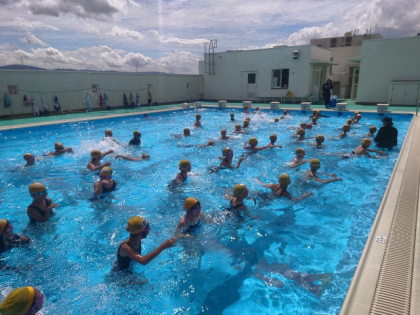 今日は、水慣れのあと、平泳ぎの足の動きを中心に練習しました。