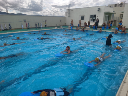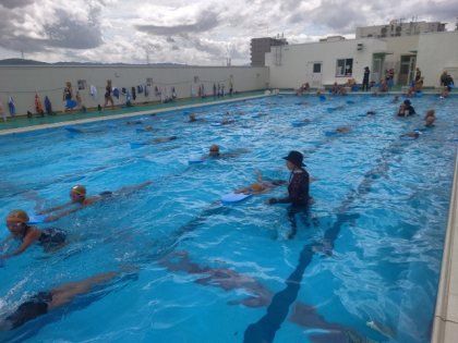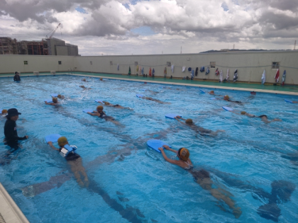 今日は、水慣れのあと、平泳ぎの足の動きを中心に練習しました。