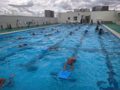 今日は、水慣れのあと、平泳ぎの足の動きを中心に練習しました。