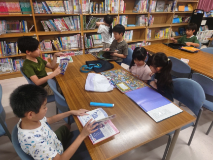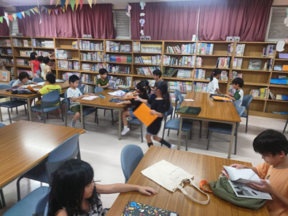 子どもたちが、自分で選んだ本を静かに読んでいます。