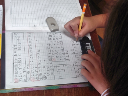 算数科の時間は、2けた÷2けたの計算の仕方を考えました。