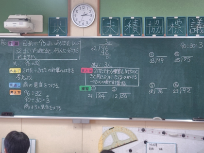 算数科の時間は、2けた÷2けたの計算の仕方を考えました。