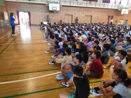 最後に、担当から今月の生活目標「持ち物には名前を書いて大事に使おう」について、また、休み時間のボールの使い方についての話をしました。