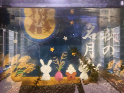 9月に入り、玄関のメダカ水槽のバックスクリーンがお月見バージョンになりました。