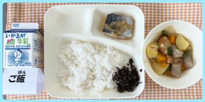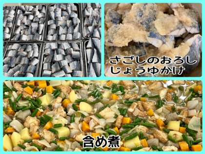今日の献立は、さごしのおろしじょうゆかけ・含め煮・牛ひじきそぼろ・ごはん・牛乳でした。