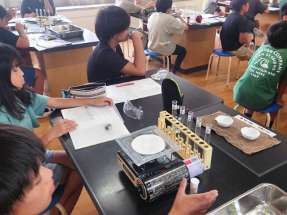 理科の時間は、食塩水、炭酸水、うすい塩酸、重そう水、アンモニア水を区別する方法について学習しました。