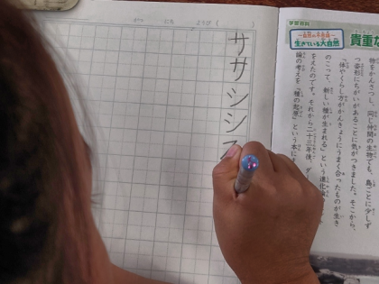 国語科の時間は、カタカナの「サ」「シ」「ス」「セ」「ソ」の練習をしました。