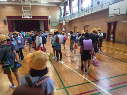 5時間目に、子どもたちが緊急に下校する事態に備えて「集団下校訓練」を行いました。