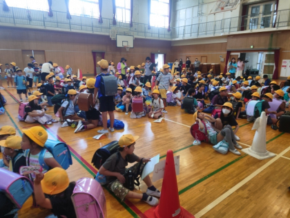 5時間目に、子どもたちが緊急に下校する事態に備えて「集団下校訓練」を行いました。