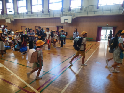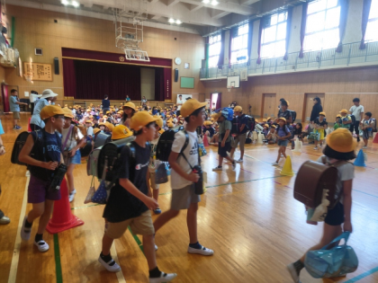 5時間目に、子どもたちが緊急に下校する事態に備えて「集団下校訓練」を行いました。