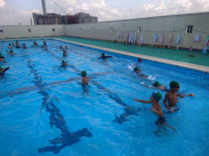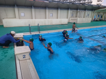 そして、今年のプール学習でどれぐらい浮いたり、水の中を進んだりできるようになったか確かめました。