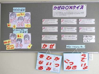 かせ゜をひかないように気をつけよう!保健室前掲示