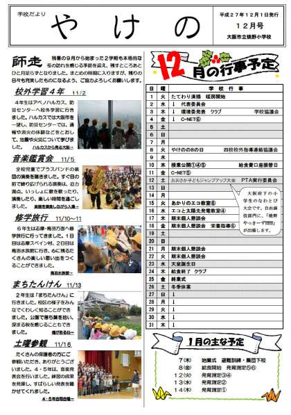 学校だより12月号を配布します。ホームページにもアップいたしました。