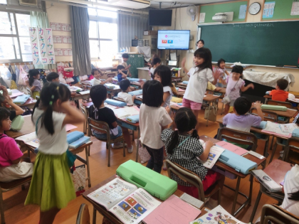 音楽科の時間は、鍵盤ハーモニカの演奏「みつばちハニーのぼうけん」を聴いて、みつばちの冒険のようすを思い浮かべたり、音楽に合わせて体を動かしたりして、楽しく学習しました。