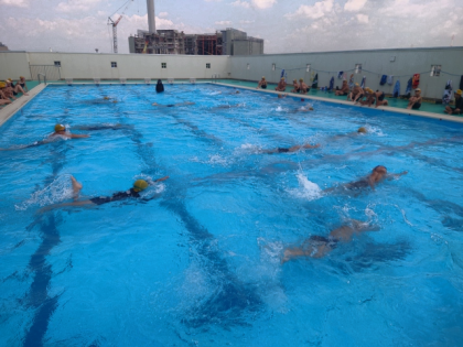 今日は、水慣れのあと、平泳ぎの足の動きや面かぶりクロールなどを中心に練習しました。