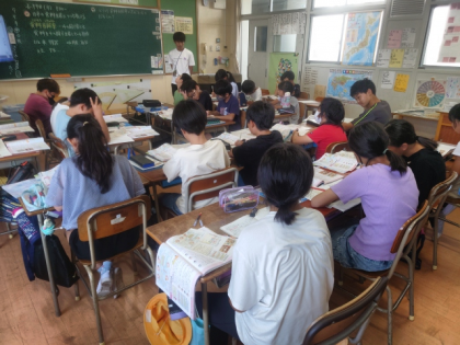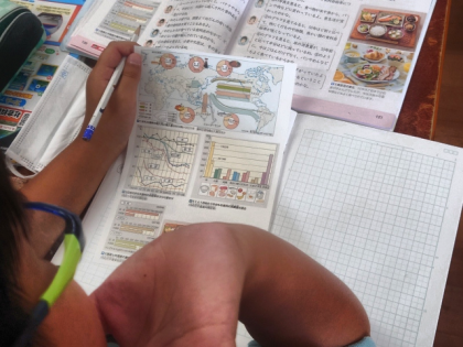 社会科の時間は、日本の食料生産の現状と課題について調べ、なぜ食料自給率が下がってきているのか、みんなで考えました。