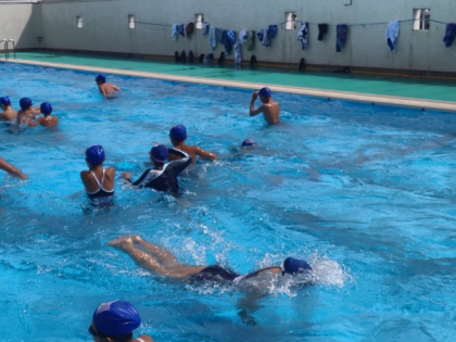 今日は、水慣れの後、クロールと平泳ぎの練習をしました。