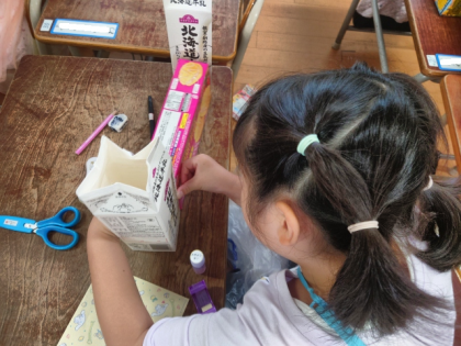 箱を組み合わせて好きなものを立体で表現する学習をしました。
