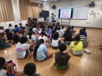 スライドを使ったわかりやすいお話で、子どもたちはしっかり話を聞くことができました。