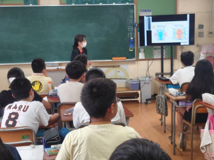 授業の前半は、暑いときに涼しくする、また、寒いときに暖かくする行動や方法について話し合いました。