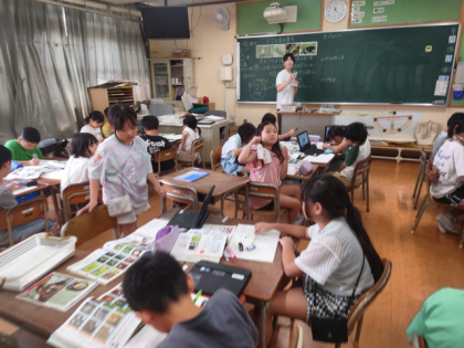 理科の時間は、カブトムシやアキアカネ、ショウリョウバッタがたまごから成虫になるまでのようすを調べたことを発表しました。
