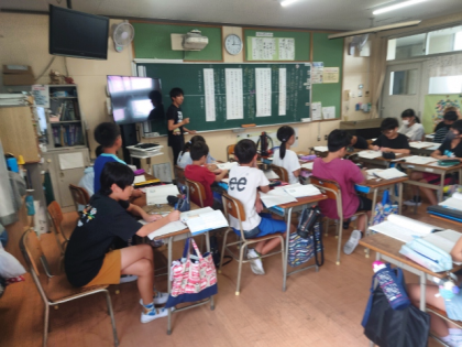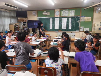 今日は、料理店の戸に書かれた言葉に対する紳士たちの気持ちの変化を読み取り、ワークシートに考えをまとめ、みんなで交流しました。