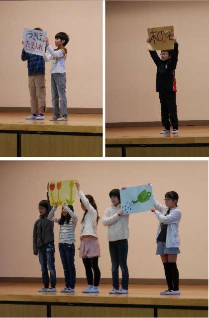 今日の児童集会では、児童会の環境委員会の発表でした。日頃の委員会の活動を説明してくれました。新聞づくりや、毎朝の玄関清掃、玄関の球根うえ、校内の木の名前つけなどいろいろな仕事をみんなのためにしてくれていることがわかりますね。