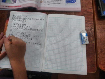 社会科の時間は、漁獲量の制限や、栽培漁業など、漁獲量を増やすための取り組みについて調べました。
