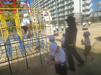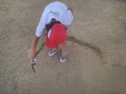 生活科の時間は、シャボン玉やペットボトルの水でっぽう、水のお絵描きなど、夏の遊びをみんなで楽しみました。