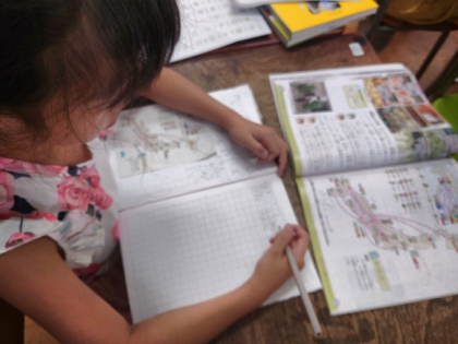 今日は、店に並んでいる野菜や果物などの品物の仕入れ先を調べることで、店が他地域や外国とも結びついていることについて考えました。