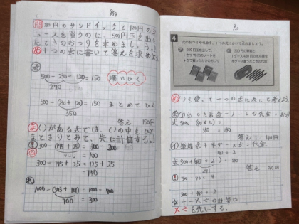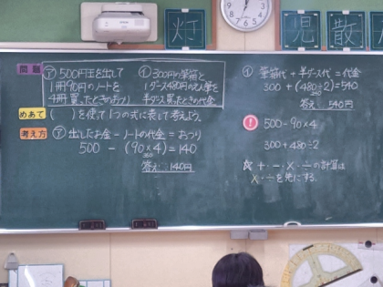 算数科の時間は、「12+2×3」「12÷2×3」「12÷(2×3)」の、それぞれの計算の順序について考えました。