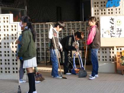 秋になり毎日のように落ち葉が玄関に落ちています。環境委員が毎日掃除をしてくれています。ありがとうございます。落ち葉だけでなく砂が多いときもありますね。正門前に落ちている落ち葉もひろってくれている児童もいました。おかげでとてもきれいな玄関になっています。
