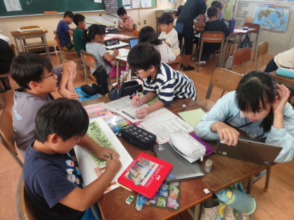 これまで、子どもたちは世界にはどんな学校があるのか、本やインターネットで調べました。