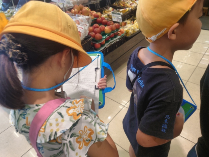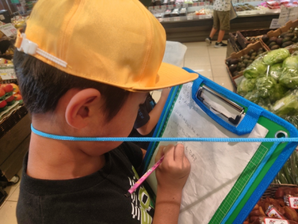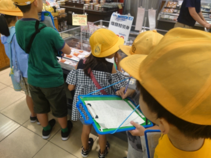 子どもたちは、たんけんボードを持って売り場を一生懸命調べて「お店の売り方の工夫」をたくさん見つけることができました。