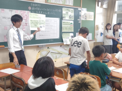この時間の学習は、大阪市小学校教育研究会国際理解教育部の公開授業として行いました。