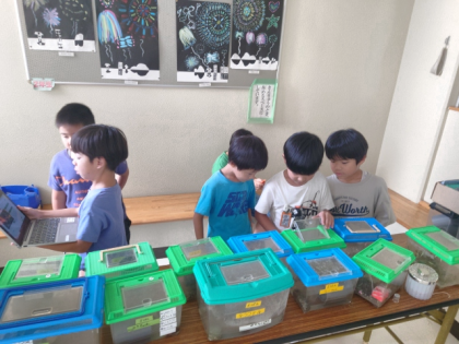 子どもたちは、こん虫やザリガニなどの小動物が大好きです。