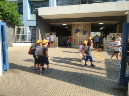 「葉っぱ」や「花」は教室で、画用紙に描いた「木」に貼っていきます。