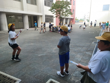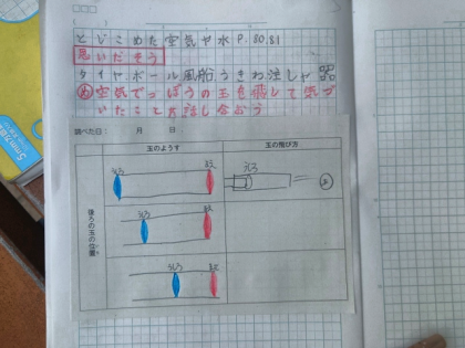 理科の時間は、空気でっぽうで玉を飛ばす実験をしました。