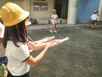 理科の時間は、空気でっぽうで玉を飛ばす実験をしました。