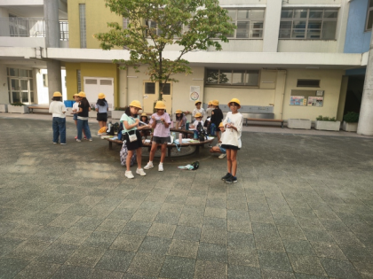 理科の時間は、空気でっぽうで玉を飛ばす実験をしました。