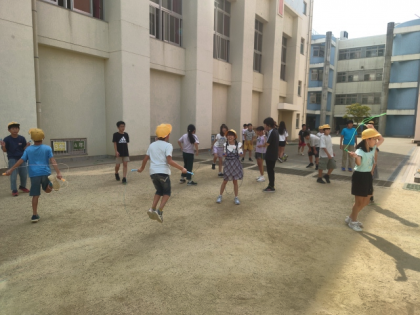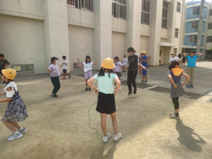 仲良く「クラス遊び」や「なわとび」をしている子どもたちもいますね。