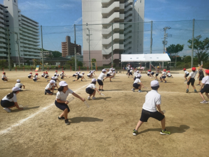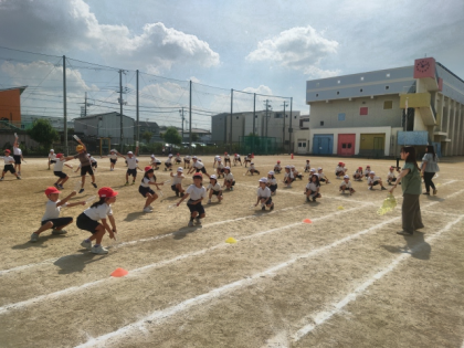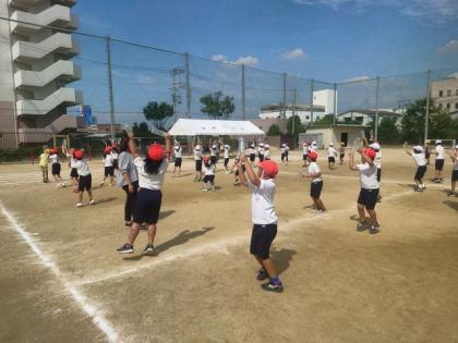 運動会に向けて、今日は、運動場でダンスの練習をしました。