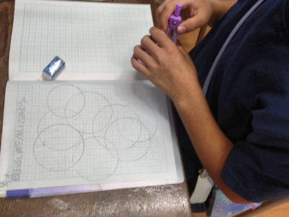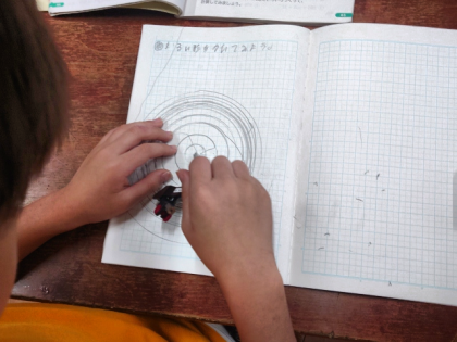 算数科の時間は、コンパスを使って円をかく練習をしています。