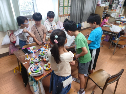 生活科の時間は、「おもちゃランド」を開く準備をしています。