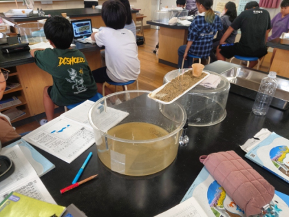 理科の時間は、流れる水の働きについて学習しています。