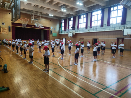 運動会に向けて、団体演技の練習に取り組んでいます。