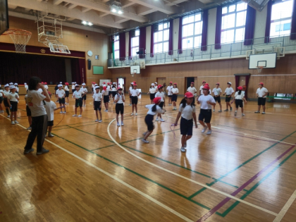 4年生は、音楽に合わせてなわとびとダンスを組み合わせた演技に取り組んでいます。